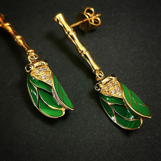 Boucles d'oreilles Cigale – Argent 925 & Émail Artisanale | Symbole de Renouveau